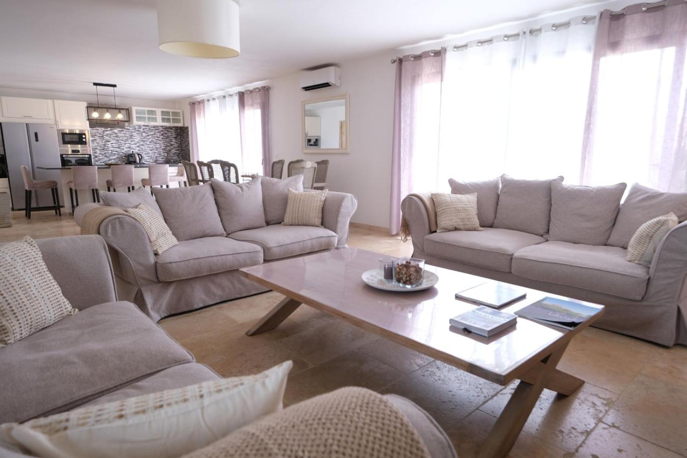 Four-Bedroom Villa. The private pool is a top feature of this villa. Boasting a private entrance, this air-conditioned villa features a kitchen, 4 bedrooms and 2 bathrooms with a shower and a hairdryer. Guests will find a refrigerator, a dishwasher, kitchenware and an oven in the fully equipped kitchen. The villa also comes with a barbecue. Featuring a terrace with garden views, this villa also features a washing machine and a flat-screen TV. The unit has 4 beds.