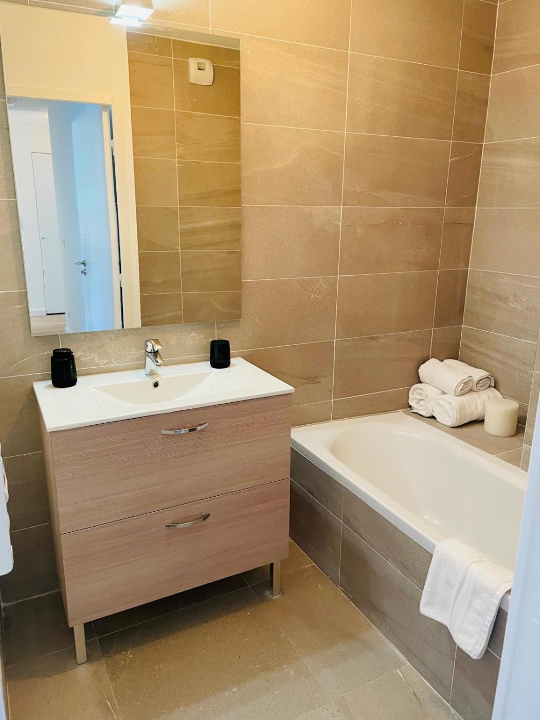Apartment. Featuring 4 bedrooms and 1 bathroom with a hairdryer, this spacious apartment offers a well-fitted kitchen and a terrace. The well-equipped kitchen features a refrigerator, a dishwasher, a microwave and a tea and coffee maker. This apartment has a washing machine, heating and a flat-screen TV. The unit has 4 beds.