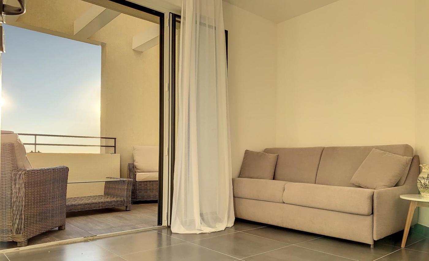 Opening onto a terrace, this air-conditioned apartment comes with 2 separate bedrooms and a fully equipped kitchen. A flat-screen TV is provided.