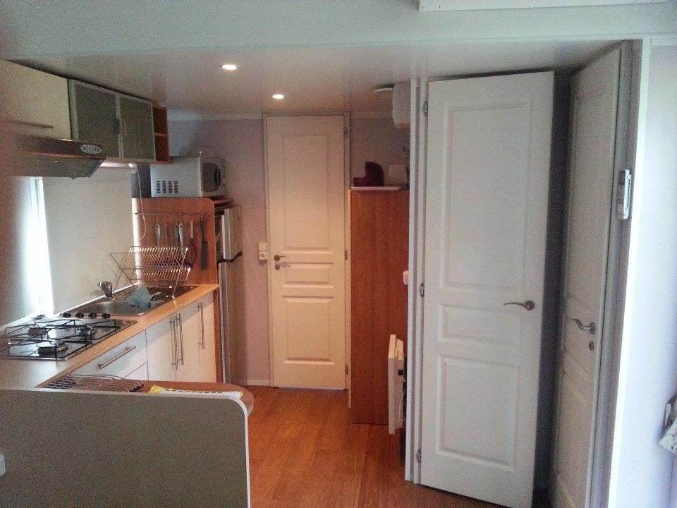 Holiday Home. Our Grand Wooden Chalet is fully equipped. It has 2 kitchens, one of which is pro (fully equipped), a large dining room with TV and Hifi and a small lounge area. You will find a covered outdoor terrace and a private pétanque court. ;