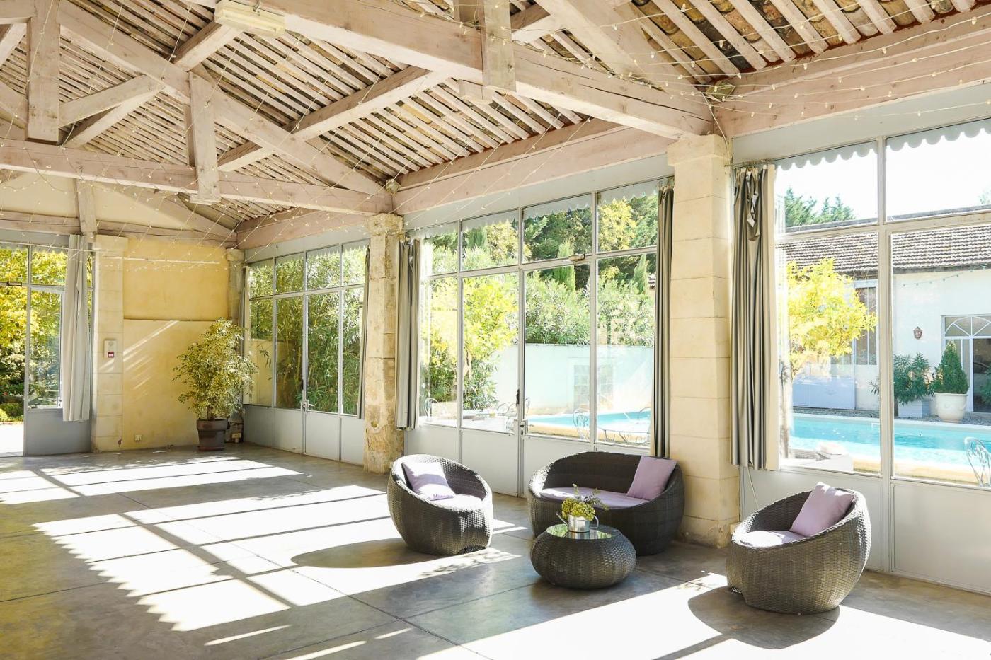 Situated in Châteauneuf-de-Gadagne, in a historic building, 12 km from Parc des Expositions Avignon, Domaine de Blanche Fleur is a guest house with a seasonal outdoor swimming pool and open-air bath. There is a private entrance at the guest house for the convenience of those who stay. There is a sun terrace and guests can make use of free WiFi, free private parking and an electric vehicle charging station.
