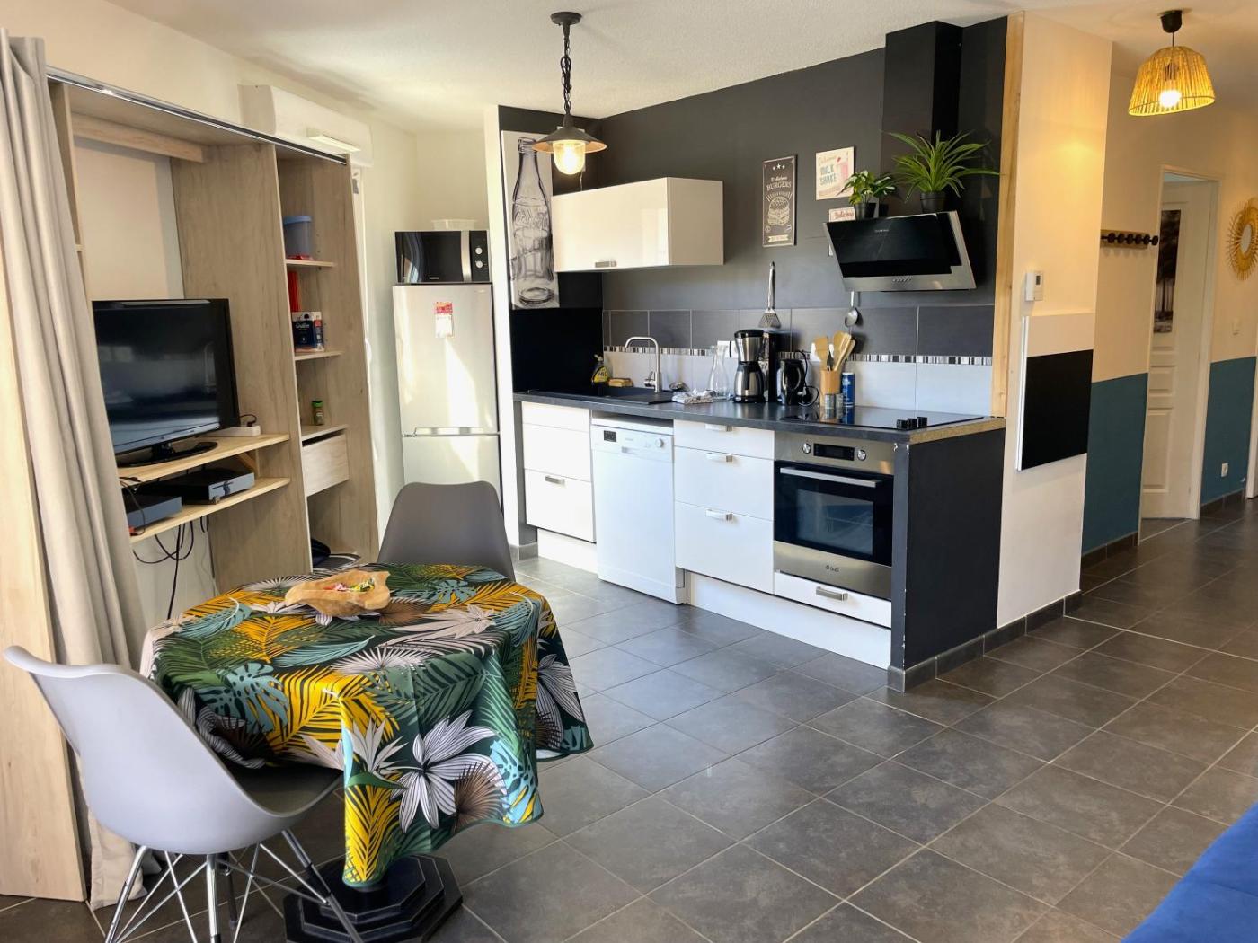 One-Bedroom Apartment. This apartment comprises 1 living room, 1 separate bedroom and 1 bathroom with a walk-in shower and a hairdryer. In the well-fitted kitchen, guests will find a stovetop, a refrigerator, a dishwasher and kitchenware. Featuring a terrace with city views, this apartment also provides a washing machine and a flat-screen TV with cable channels. The unit offers 2 beds.