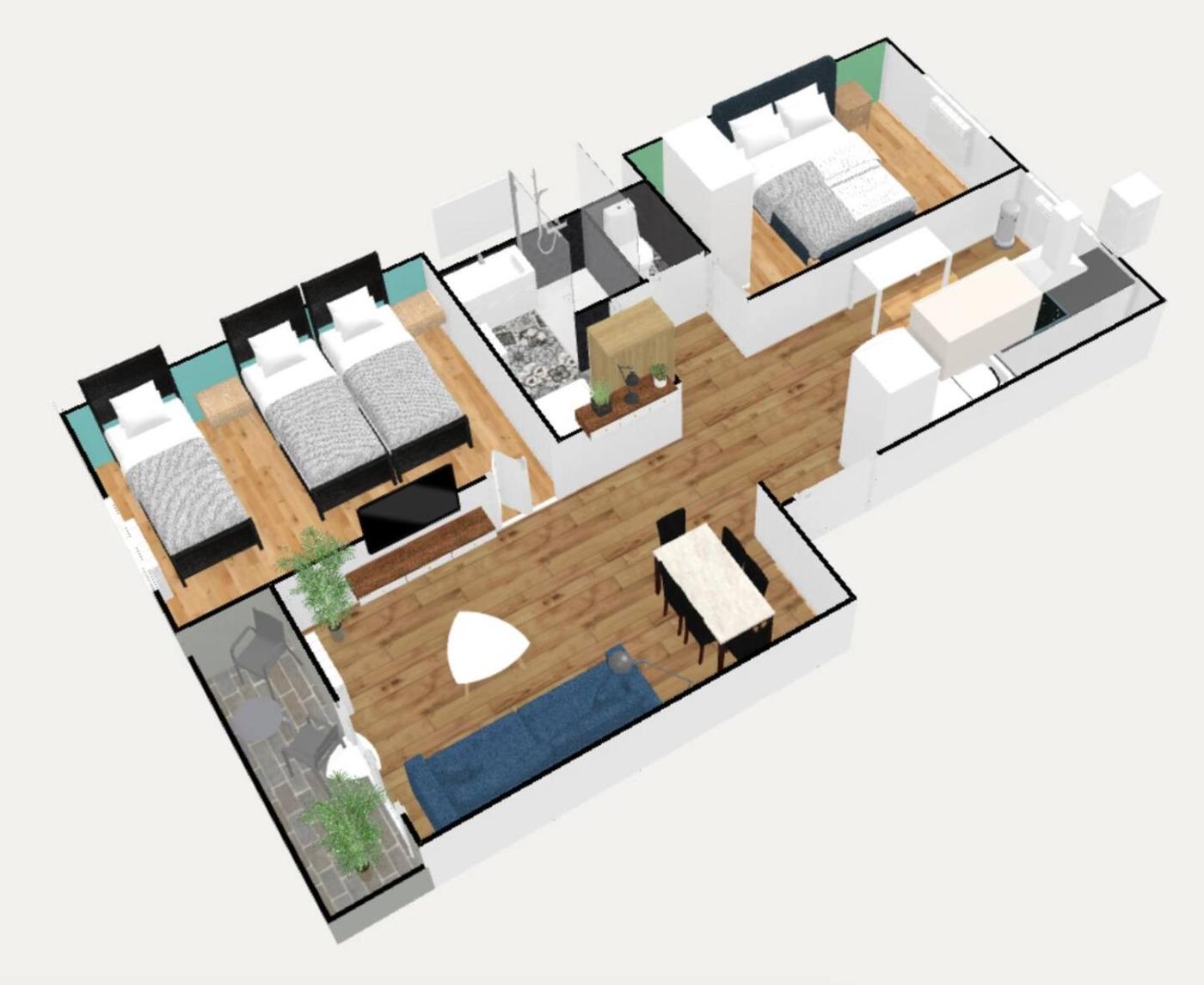 Two-Bedroom Apartment. The air-conditioned apartment features 2 bedrooms, 1 bathroom and a kitchen. The apartments kitchen is available for cooking and storing food. This apartment has a washing machine, heating and a flat-screen TV. The unit offers 4 beds.