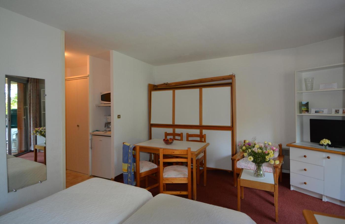 Facing The Château des Templiers, the Hauts de Gréoux offer an exceptional site and an ideal calm to relax, with a heated swimming pool from mid-April to mid-October and air conditioning in summer. Overlooking the village of Gréoux les bains, a few minutes walk away, the residence allows everyone to live at their own pace in the privacy of studios with private terrace, to enjoy the park and the private swimming pool