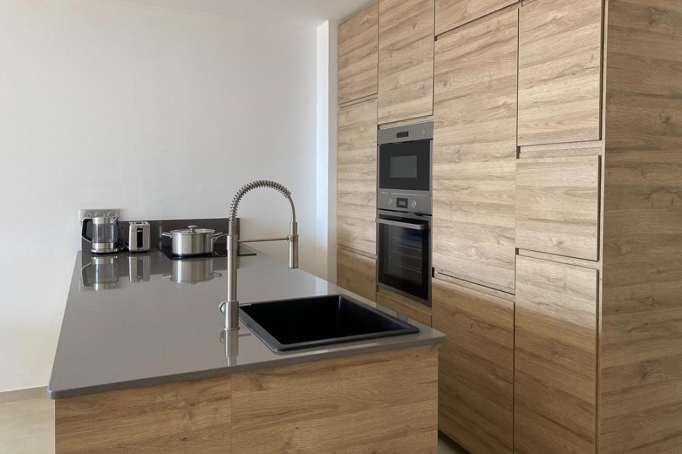 Two-Bedroom Apartment. The private pool is the standout feature of this apartment. This apartment features 1 living room, 2 separate bedrooms and 1 bathroom with a shower and free toiletries. The fully equipped kitchen has a refrigerator, a dishwasher, kitchenware and an oven. The air-conditioned apartment features a flat-screen TV with streaming services, a washing machine, a coffee machine, a seating area as well as sea views. The unit has 2 beds.