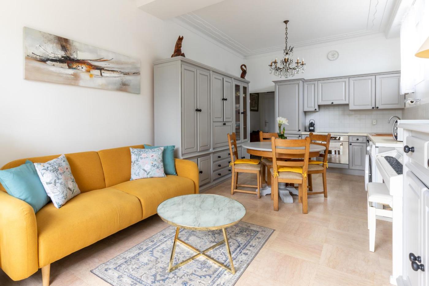 Apartment with Terrace. This air-conditioned apartment consists of 1 living room, 1 separate bedroom and 1 bathroom with a bath. Guests can make meals in the kitchen that is equipped with a refrigerator, a dishwasher, kitchenware and an oven. Featuring a terrace with garden views, this apartment also provides a washing machine and a TV. The unit offers 2 beds.
