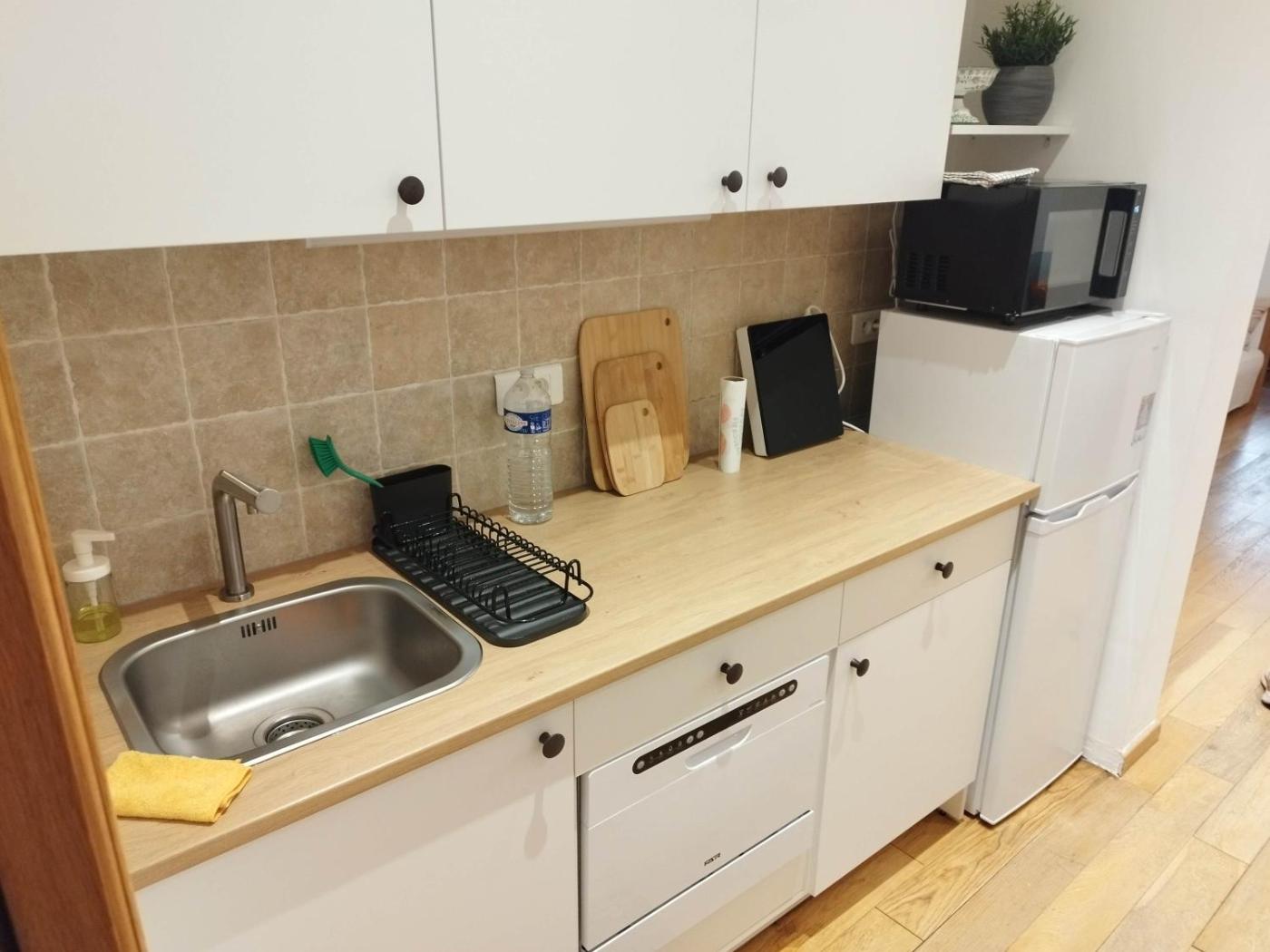 Two-Bedroom Apartment. The well-fitted kitchen features a stovetop, a refrigerator, a dishwasher and kitchenware. The apartment has parquet floors, a seating area with a flat-screen TV, a washing machine, a coffee machine as well as city views. The unit offers 2 beds.