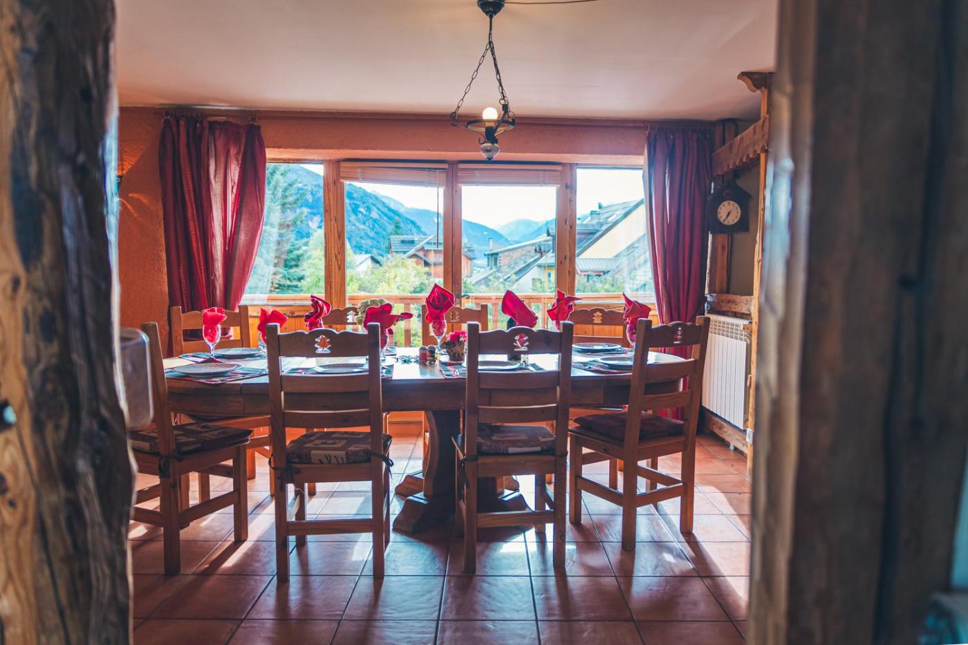 The spacious holiday home with a terrace and mountain views has 6 bedrooms, a living room, a flat-screen TV, an equipped kitchen with a dishwasher and a microwave, and 5 bathrooms with a shower. Towels and bed linen are offered in the holiday home. There is also a seating area and a fireplace.