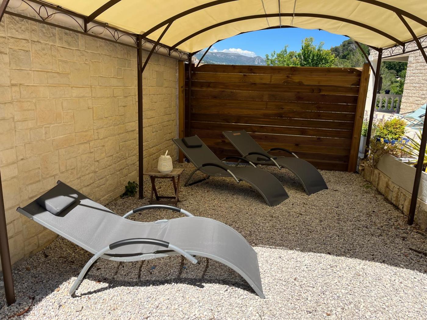 Boasting a garden, private pool and garden views, villa plaisirs is situated in Saint-Paul-de-Vence. A hot tub is available for guests. There is a sun terrace and guests can make use of free WiFi and free private parking.