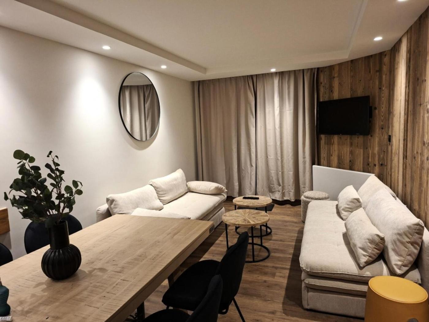 Situated in Val Thorens in the Rhône-Alps region, Résidence Temples Du Soleil Tikal - VAL THORENS SPACIEUX 3 PIECES 6 PERSONNES EXPOSE SUD A DEUX PAS DES PISTES MAE-7475 features a balcony. The apartment is 46 km from Galibier-Thabor. The property is non-smoking and is located 46 km from La Norma.